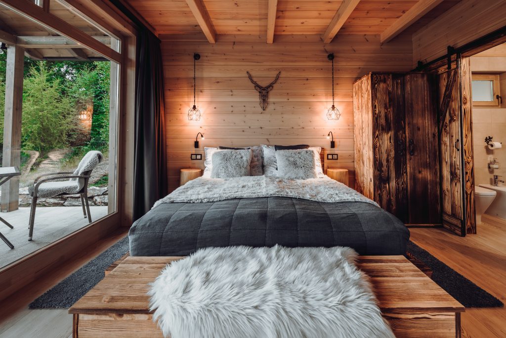 A Chalet franciaágya prémium matraccal és pihepuha takarókkal vár téged!